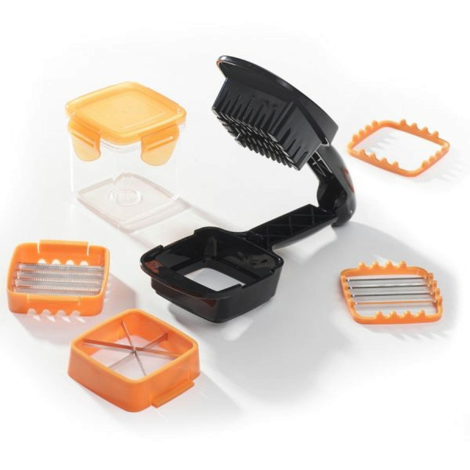 Recipiente hermético incluido: corta directamente dentro del recipiente y conserva tus alimentos frescos gracias a su tapa.