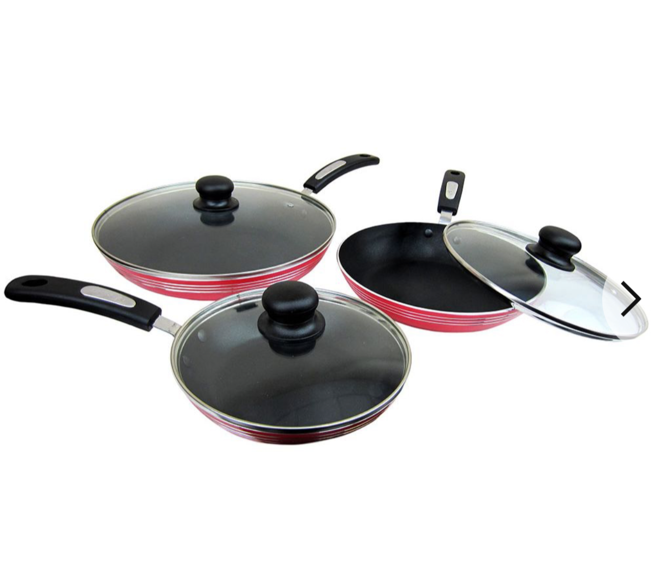 JUEGOS 3 SARTENES PREMIUM ROJO + 3 TAPAS DE VIDRIO
