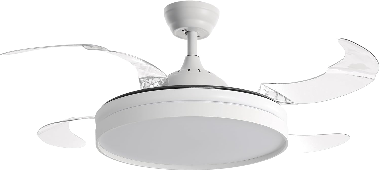 Aspas Retráctiles: Diseño innovador que permite ocultar las aspas cuando no están en uso, ofreciendo una apariencia de lámpara moderna.